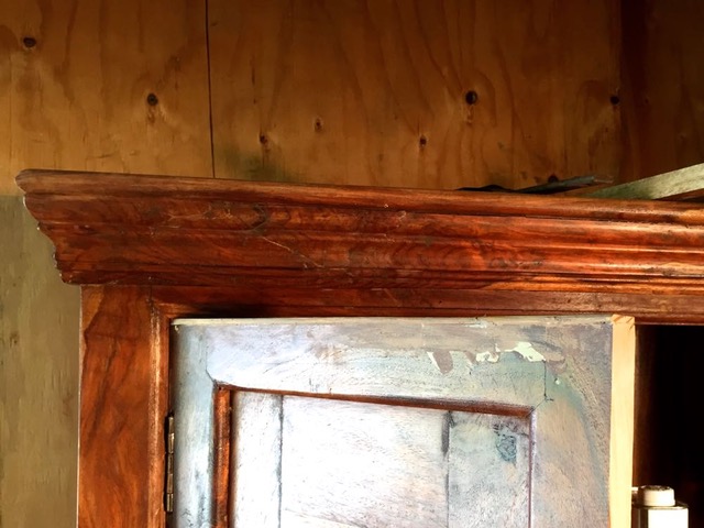 [Glue setting on rebuilt drawer edge, to be trimmed for non-square fitting!]