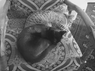 Thanks again for Tuesday evening. All the best from Lady Dar, cross-stitching in the Rumpus Room, riveted to the TV screen, her eyes cemented on Victor, swooning every time he is in a scene of The Young and the Useless, while Etta and Duke are cat-napping! Cheers, Patrizzio! Pics: Sleepy kittens, last night and this afternoon! I thought being retired was wonderful!