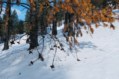 Shame I say, Shame on you weasel laggards who clung like barnacles to the warmth of your beds and fireplaces for the misdirection and harsh criticism, [undeserved, of course], of Our Fearless, Beloved Leader. Per esempio, whenever I elected to break trail I would ask, [naively, I now understand], "Which way, Sir?" "Whichever route is easiest for you, Porthizzio." And then, when finally atop one ridge or another to hear, dripping with vitriol, "Well, I wouldn't have gone that way!" [No wonder the palace revolt is gaining momentum!]